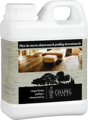 Original Chapel Parket - płyn do mycia podłóg olejowanych. Wydajność: 1 nakrętka na 5 litrów wody. Sposób użycia: podczas mycia należy używać tylko wilgotnej ścierki lub mopa (dobrze odsączać wodę). Dla osiągnięcia najlepszego rezultatu należy po umyciu wytrzeć podłogę do sucha.