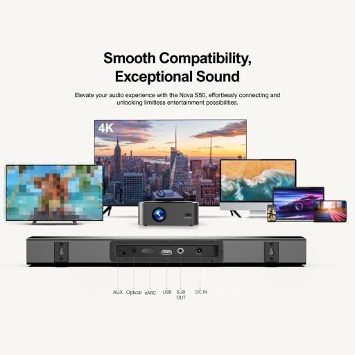 Podnieś poziom swojego telewizora do Dolby Atmos: Wyposażony w Dolby Atmos, najnowocześniejszą technologię audio, Nova S50 przenosi dźwięk w nowy wymiar. Dolby Atmos oferuje wielowymiarowe wrażenia dźwiękowe, które zapewniają wirtualną wysokość i elementy przestrzenne, wypełniając pokój z fantastycznym dźwiękiem.
