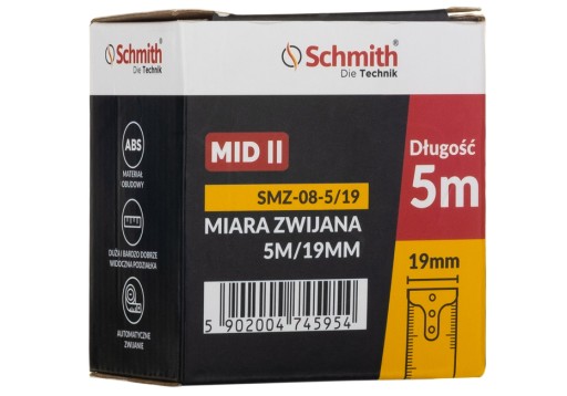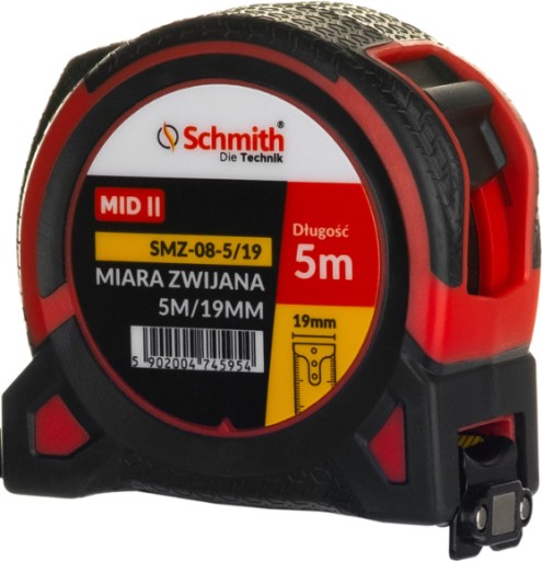 SCHMITH MIARA TAŚMA METRÓWKA MIARKA ZWIJANA 5m x 19mm MAGNES KARABIŃCZYK