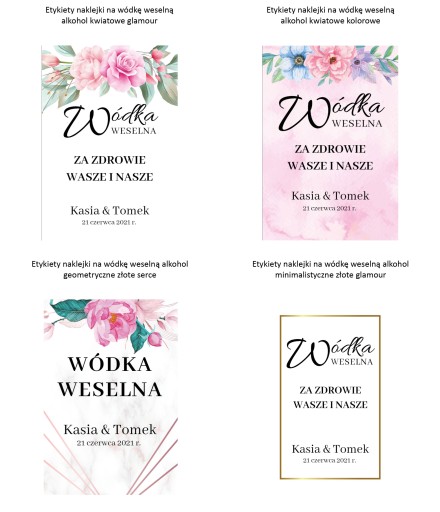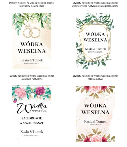 Etykiety naklejki na wódkę weselną alkohol zestaw 45 sztuk