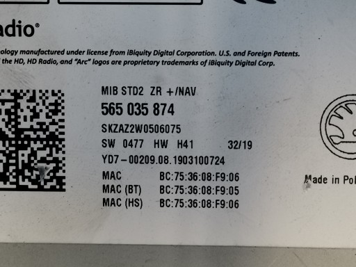 SKODA OCTAVIA 3 III LIFT 20R 2.0TDI EUROPA НАВИГАЦИОННЫЙ СЧИТЫВАТЕЛЬ MIB 565035874