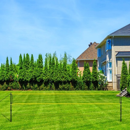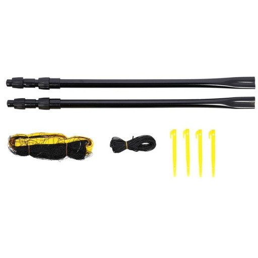 Produkt montuje się wbijając do ziemi słupki, które są stelażem, a do których przywiązujemy siatkę. Słupki są teleskopowe i oferują możliwość, powieszenia siatki na dwóch wysokościach. Zarówno siatka jak i stelaż, są odporne na warunki atmosferyczne. Długość siatki to ponad 6 m, dlatego pozwala na swobodne rozegranie, dwóch meczy jednocześnie.