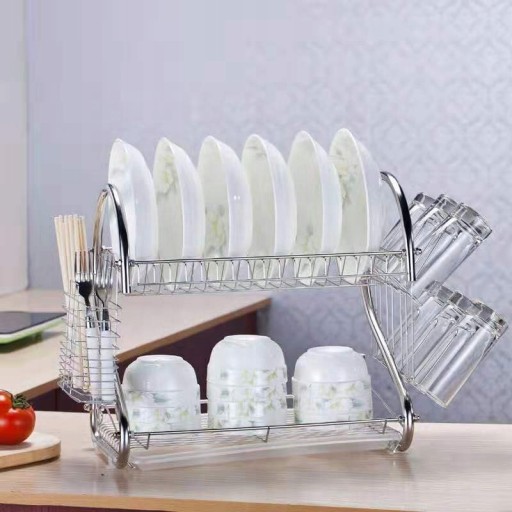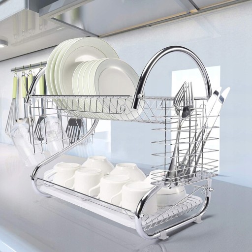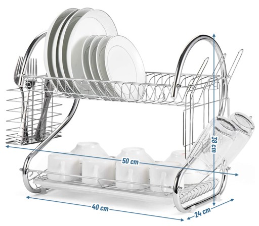 КУХОННАЯ ПОСУДОСУШКА, ДВУХУРОВНЕВАЯ, КАПЕЛЬНИК С ХРОМИРОВАННЫМ ПОДДОНОМ