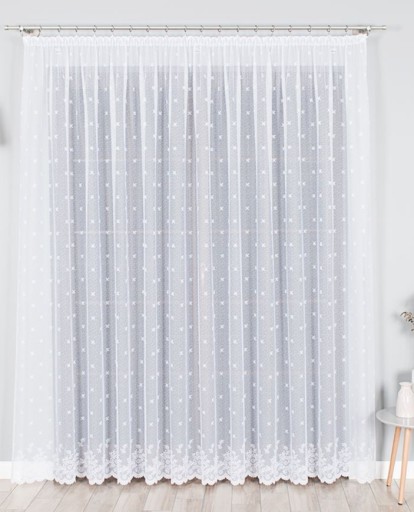 Firanka z ładnym wzorem , doskonale się układa i nie wymaga prasowania. Firanka od góry wykończona fabrycznie z taśmą marszczącą , boki obszyte. Będzie pasowała do każdego wnętrza.