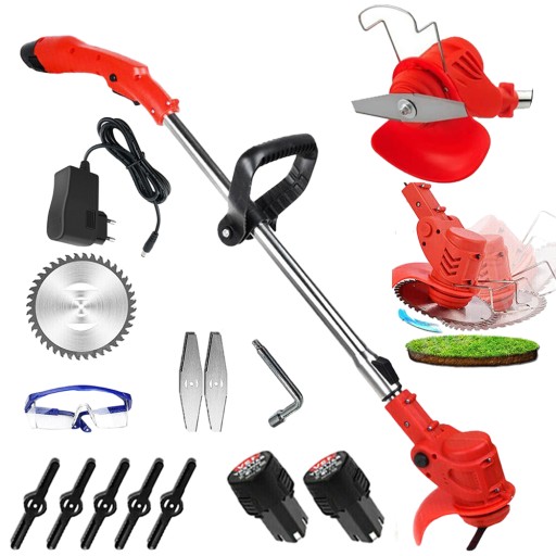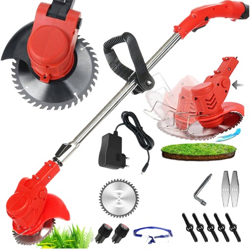 - Kosiarka akumulatorowa jest wyposażona w trzy głowice tnące, które są obsługiwane przez koszenia miękkiej trawy. Metalowe ostrze ze stali nierdzewnej nadaje się do koszenia trawników, chwastów i małych krzewów. Piła tarczowa ze stali manganowej nadaje się do koszenia grubszej trawy, krzewów i pojazdów. Ostrze jest ostre i mocne, pozwala na szybkie cięcie. Kąt głowicy można zastosować w zakresie 90 stopni, pozwala użytkownikom dostosować kąt cięcia i regulację w ciasnych miejscach, np. pod stołem warsztatowym.