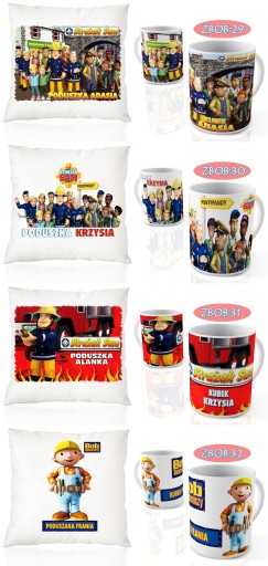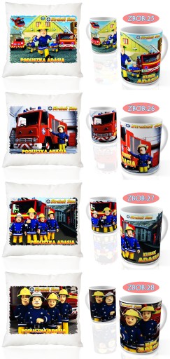 НАБОР КРУЖКА ПОДУШКА ПОЖАРНЫЙ СЭМ + ИМЯ ОТЛИЧНЫЙ ПОДАРОК ДЛЯ ДЕТЕЙ-ЛЮБИТЕЛЕЙ
