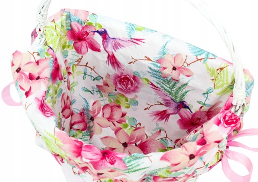Wkład posiada w górnej części wszytą gumę, dzięki czemu dopasuje się do koszyka, a satynowe wstążki dodadzą uroku i stabilności.