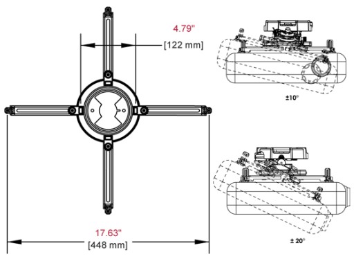 Dzięki regulowanemu rozstawowi otworów montażowych od 216 do 448 mm, uchwyt pasuje do niemal wszystkich modeli projektorów przenośnych i desktopowych.