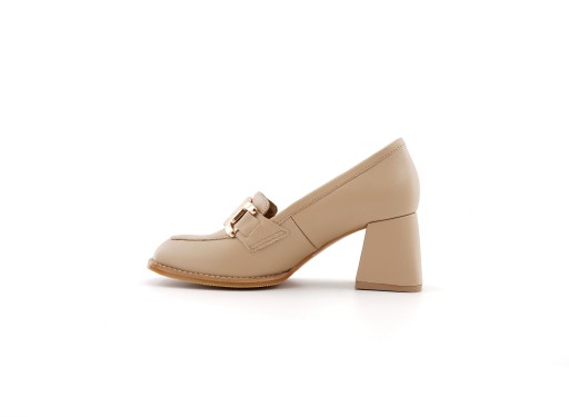 Wykonane z wysokiej jakości włoskiej skóry w odcieniu beżu, prezentują się niezwykle stylowo i uniwersalnie. Złota ozdoba umieszczona na cholewce dodaje im subtelnego blasku, podkreślając ich wyjątkowy charakter. Wygodę zapewnia miękka skórzana wkładka, gwarantując przyjemne uczucie noszenia przez cały dzień. Stabilny obcas o wysokości 6 cm oraz kwadratowy nosek nadają butom elegancji, równocześnie zapewniając pewność kroku. Te czółenka to doskonałe połączenie stylu, jakości i wygody dla kobiet ceniących wyjątkowe detale i ponadczasowy design.