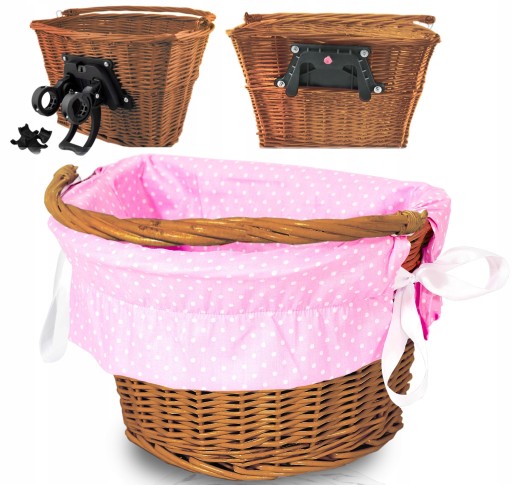 Koszyk wiklinowy na rower będzie pasował do wszystkich modeli o rozmiarach kół 20", 24", 26", 27", 28" i kierownicy o średnicy 25 mm. Sprawdzi się zatem zarówno w rowerach zwykłych, miejskich, jak i turystycznych czy do roweru MTB z amortyzatorem lub bez. Koszyk na rower z wikliny montuje się za pomocą wygodnego uchwytu typu CLICK. Taki sposób montowania pozwala na bardzo szybkie wpięcie i wypięcie koszyka na rower z wikliny – bez potrzeby stosowania żadnych dodatkowych narzędzi. W zestawie znajduje się zarówno koszyk wiklinowy na rower, jak i wszystkie potrzebne elementy montażowe.