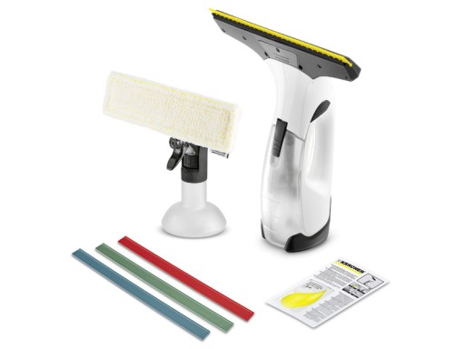 - Wyposażenie: 1 x butelka ze spryskiwaczem, 1 x końcówka ssąca, 1 x pad z mikrofibry, 1 x środek do czyszczenia okien, 3 x listwa ssąca, Ładowarka