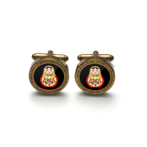 Spinki do mankietów z wysokiej jakości grafiką są interesującym wyborem i przełamują klasyczny styl. Oprawione w stalową bazę w kolorze antycznego złota pasują do każdej stylizacji!