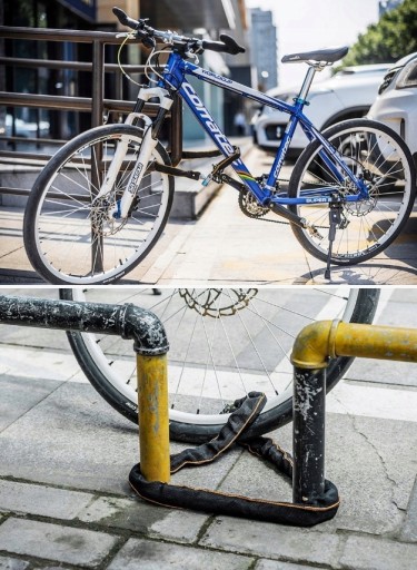 Tradycyjne zabezpieczenia rowerów takie jak np. linka, są łatwe do usunięcia przez złodzieja. Widok powyższego zapięcia będzie jednak skutecznie odstraszał złodziei.