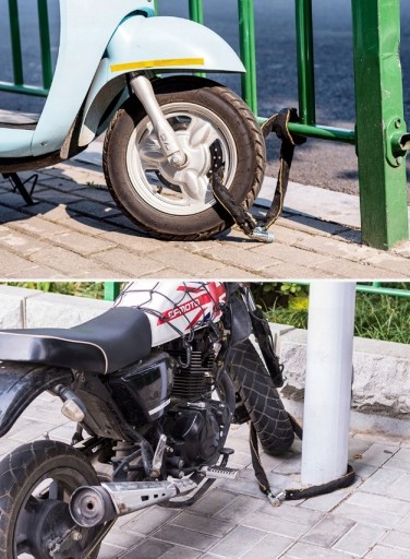 Idealny do zabezpieczeń pojazdów dwukołowych, krat lub bram. Dzięki materiałowi nie rysuje lakieru.