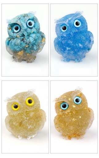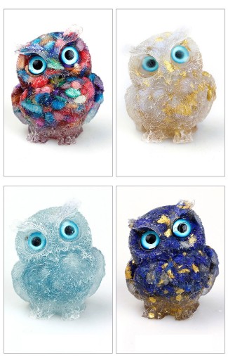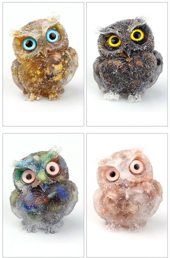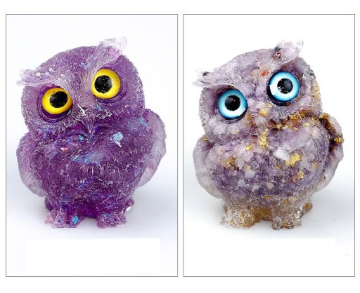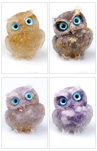 【Kreatywny projekt】 Ta statua sowy jest tak żywa i wyjątkowa. Są wykonane ręcznie z przezroczystej żywicy w kształcie sowy i wypełnione naturalnymi kamieniami szlachetnymi. Kamienie szlachetne można zobaczyć na spodzie posągu.
