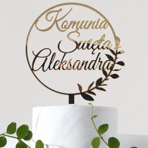 Topper na tort komunijny - Komunia Święta z imieniem dziecka