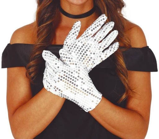 Rękawiczki cekinowe białe 22 cm akcesoria