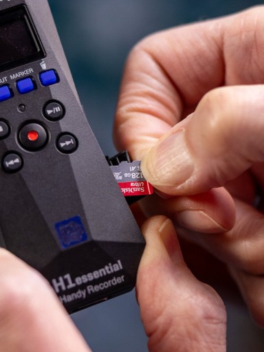 H1essential obsługuje karty SDXC o pojemności do 1 TB, które umożliwiają nagrywanie wielu godzin dźwięku.