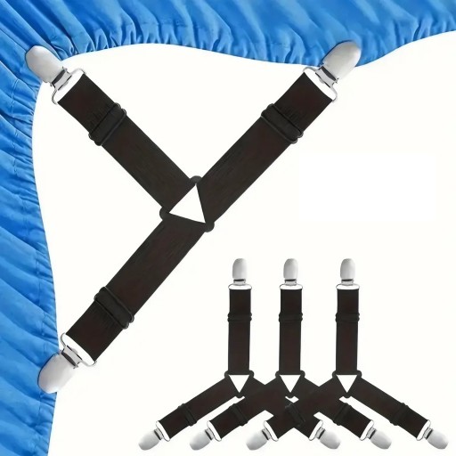 W opakowaniu znajdują się 4 zapięcia do prześcieradła, po jednym na każdy narożnik łóżka.