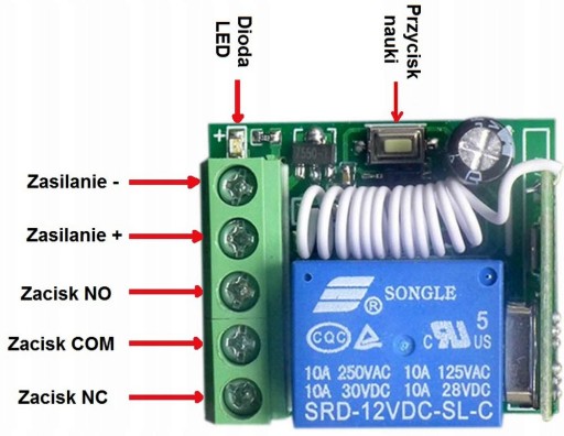 - Włącznik posiada pamięć do maksymalnie 20 nadajników.
