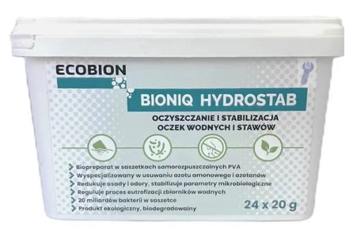 Biopreparat BioniQ Hydrostab to nowość na rynku biopreparatów. Jest to specjalistyczny produkt biotechnologiczny w samorozpuszczalnych saszetkach przeznaczony do oczyszczania oczek wodnych oraz ogrodowych stawów wodnych, przywracając im naturalną równowagę biologiczną. BioniQ Hydrostab oparty jest na specjalnie wyselekcjonowanych, niepatogennych szczepach bakteryjnych z rodzaju Bacillus o potwierdzonej skuteczności działania.