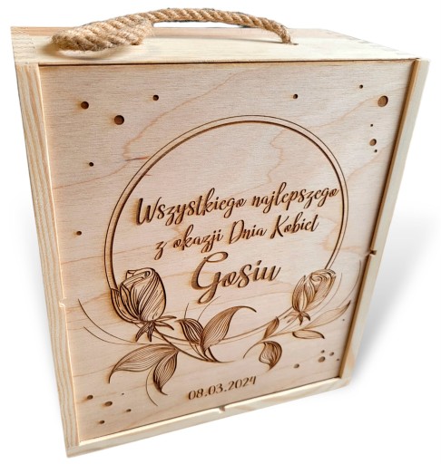 Pudełko zasuwane z grawerem idealne sprawdzi się jako opakowanie na podarunki na dzień kobiet jak i również każdą inną okazje. Do środka można zapakować np. miody, świece czy filiżanki.