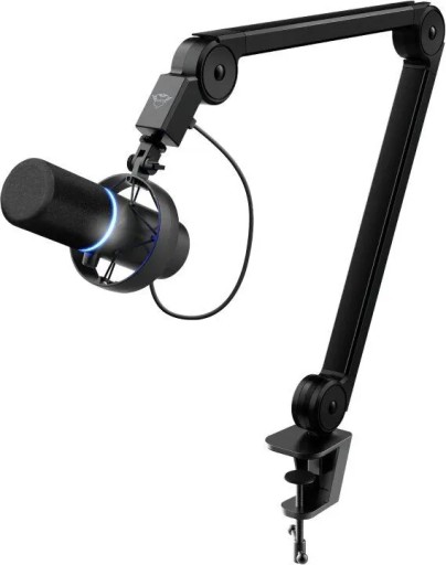 PROFESJONALNY MIKROFON Z RAMIONEM GXT 255+ ONYKS; Profesjonalny mikrofon i ramię klasy studyjnej; profesjonalna jakość dźwięku i czysty wygląd; Mikrofon studyjny; • Zmień swoje biurko w studio treści. Dzięki kardioidalnej charakterystyce dźwięku, mocowaniu przeciwwstrząsowemu, monitorowaniu o zerowej latencji i aluminiowemu wysięgnikowi w zestawie, Trust Onyx Professional Microphone zapewnia wszystko, czego potrzebujesz do nagrywania dźwięku w jakości studyjnej. Dodatkowo regulowany pierścień oświetleniowy LED z sześcioma kolorami ożywi Twoje wysokiej jakości nagrania. : Cardioid dla twórców treści; • Zaprojektowany z myślą o twórcach treści, ten profesjonalny mikrofon membranowy doskonale nadaje się do przesyłania strumieniowego, nagrywania i nadawania wszelkiego rodzaju treści. Dzięki charakterystyce kardioidalnej hałas otoczenia jest redukowany, co sprawia, że ten mikrofon nadaje się do podcastów, narracji głosowych, transmisji na żywo i nagrań instrumentów; każdy dźwięk, który wydasz, zostanie uchwycony w najwyższej możliwej jakości. : Ramię wysięgnika; • Do nagrań w jakości studyjnej potrzebujesz stabilnej konfiguracji. Ten wysięgnik klasy studyjnej jest wykonany z wytrzymałego aluminium, aby zredukować niepożądane dźwięki z wibracji. Ramię jest w pełni regulowane, dzięki czemu możesz zapewnić najlepszą pozycję i kąt do nagrywania, jednocześnie dbając o ergonomię. Stojak, mocowany do stołu, oszczędza miejsce, a ukryty kabel utrzymuje biurko w czystości. : Funkcje profesjonalne; • W projekcie Onyx uwzględniono kilka profesjonalnych funkcji. Mocowanie amortyzujące redukuje dźwięk każdego ruchu, a filtr pop filtruje niechciane trzaski, zapewniając krystalicznie czystą jakość. Co więcej, port monitorowania słuchawek o zerowej latencji umożliwia słuchanie tego, co nagrywasz w czasie rzeczywistym, bez żadnych opóźnień. Na korpusie mikrofonu znajduje się pokrętło wzmocnienia; pozwala to szybko dostosować czułość dźwięku. Znajdziesz tam również łatwo dostępne sterowanie wyciszeniem po wyciszeniu dioda LED zmieni kolor na czerwony. : Łatwe ustawienie; • Nagrywanie jest natychmiastowe i bezproblemowe dzięki Onyxowi. Dzięki złączu USB wystarczy komputer stacjonarny lub laptop z portem USB. W zestawie znajduje się koncentrator z jednym dodatkowym portem USB, co zapewnia dodatkową wygodę.