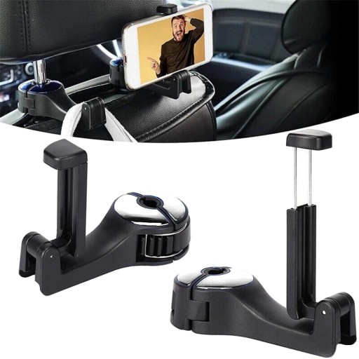 Hak na zagłówek samochodu doskonale nadaje się do wieszania artykułów spożywczych, ubrań, parasoli, torebek, butelek i stojaka na telefon Składane uchwyty na telefon dodają dodatkowych funkcji, które są mocne i eliminują