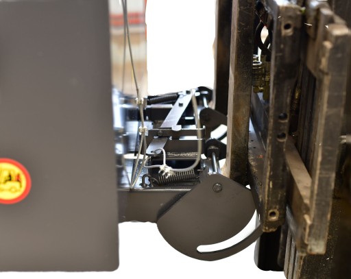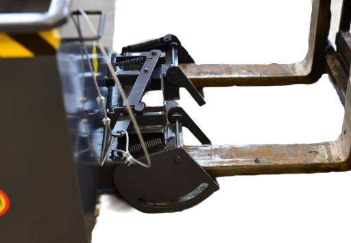 - dwie zaskakujące łapy na ramiona wideł, zabezpieczenie kontenera przed zsunięciem z wideł.