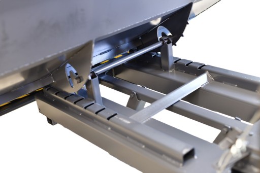 - prowadnica pracująca po swoim torze poprzez liczne otwory i trafiające w nie ząbki, która zapewnia stabilny wysyp kontenera na nierównym terenie.