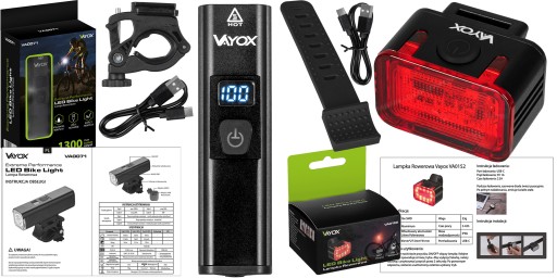 ZESTAW LAMPKA ROWEROWA PRZEDNIA I TYLNA OŚWIETELNIE LED AKUMULATOROWA VAYOX