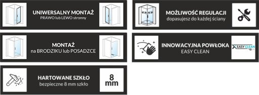Drzwi przesuwne wykonane ze szkła hartowanego o grubości 8mm, pokrytego powłoką Nano Easy Clean. Zapewnia ona im nieskazitelny wygląd, trwałość, a także odporność na wszelkiego rodzaju uszkodzenia. Drzwi zostały stworzone z myślą o indywidualnych wymaganiach użytkowników. Odznaczają się wysoką jakością i niezawodnością w działaniu.