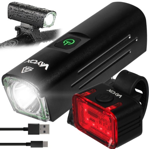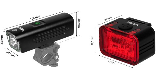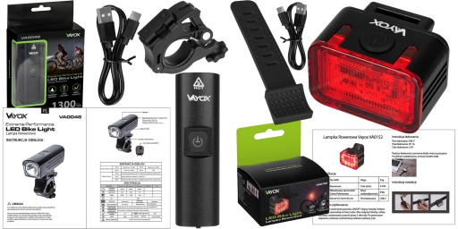 OŚWIETELNIE ROWEROWE LAMPKI PRZEDNIA I TYLNA LED USB-C AKU PRO ZESTAW VAYOX
