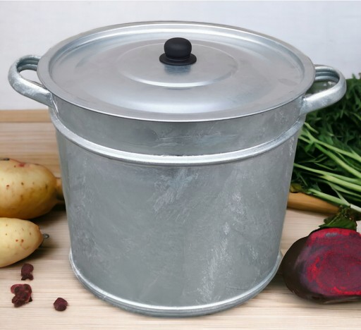 Stożkowy kocioł, wykonany z mocnej blachy i poddany cynkowaniu ogniowemu, co daje grubszą warstwę ocynku a tym samym większą wytrzymałość i odporność na korozję. Wyposażony jest w uchwyty boczne, pokrywkę oraz blaszaną dziurkowaną wkładkę, zapobiegającą przywieraniu do dna garnka gotowanej zawartości. Przetłoczone boki kotła wzmacniają jego konstrukcję, a płaskie dno umożliwia używanie go na kuchence elektrycznej lub płycie kuchennej, nie indukcyjnej.