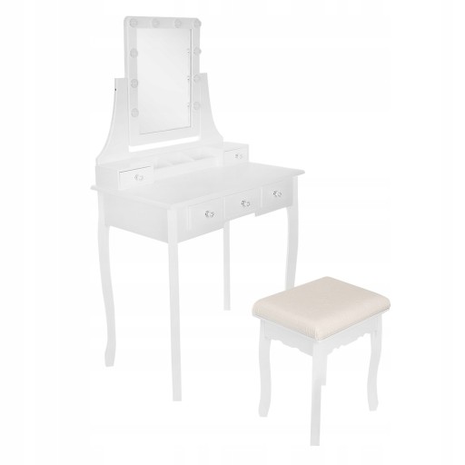 ✅ KOSMETYCZNA TOALETKA z LUSTREM LED BIAŁA + TABORET