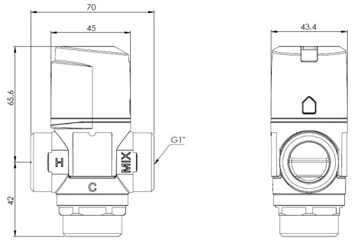ZAWÓR TERMOSTATYCZNY MIESZAJĄCY 3/4" ATM 343 ŚRUBUNKI 35-60°C Kvs 1,6 m3/h