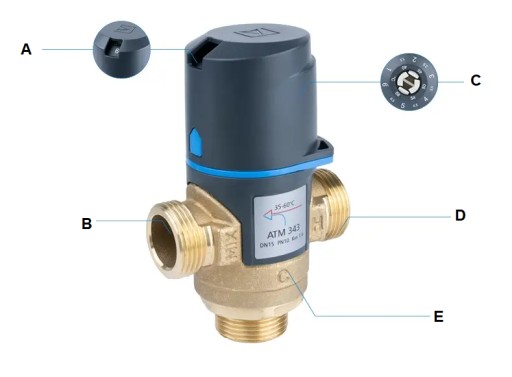 ТЕРМОСТАТИЧЕСКИЙ СМЕСИТЕЛЬНЫЙ КЛАПАН 3/4" ATM 343 35-60°C ФИТИНГИ Kvs 1,6 м3/