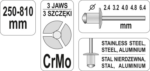 ✅ Przeznaczona do obsługi nitów ze stali, stali nierdzewnej i aluminium