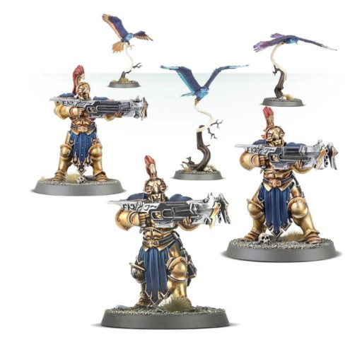Strzelając śmierć na wroga z daleka, Vanguard-Raptors uzbrojeni w długozasięgowe kusze są strzelcami bez równych. Pozostając na dobrze wybranych punktach obserwacyjnych, czekają z naładowanymi bełtami, obserwując przypływ i odpływ bitwy, aż pojawi się idealna ofiara. Vanguard Raptors z armii Stormcast Eternals to nieodzowna część bitewnego świata Warhammer Age of Sigmar.