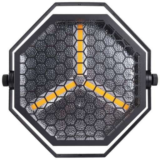 Evolights Lumeno posiada ✅ stylową obudowę z efektowną kratownicą o strukturze plastra miodu, która bardzo dobrze prezentuje się na scenie. Reflektor jest nowoczesny, a jednocześnie nawiązuje do klasycznych wzorców sprzed kilku dekad. Solidna obudowa wyposażona została w uchwyt montażowy umożliwiający instalację oświetlacza na statywach, kratownicach i rampach oświetleniowych. Z tyłu znajduje się wygodny panel sterowania z czytelnym wyświetlaczem LCD oraz 3-stykowe wejście i wyjście XLR dla łatwej kontroli w trybie DMX.