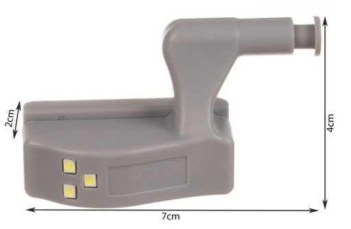 - PRAKTYCZNA – prezentowana lampka 3 LED do szafki na zawias to akcesorium, które rozwiąże problem z brakiem światła po otwarciu drzwi do szafki. Dzięki niej za każdym razem będziesz miał tak potrzebne drzwi światło, które doskonale oświetli każdy ciemny zakamarek szafki.