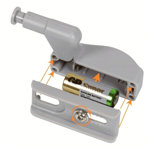 - 3 LAMPKI LED – lampka do szafki na zawias posiada 3 mocne i trwałe lampki LED, które oświetlą zimnym białym światłem niemal każdy kąt w Twojej szafce. Lampka zasilana jest baterią 23A 12V, która wystarczy na bardzo długi czas.
