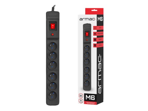 Listwa zabezpieczająca Armac Multi M6, wyposażona w sześć gniazd, przeznaczona jest do użytku w domu i w biurze. Z jego pomocą można bezpiecznie podłączyć do sieci elektrycznej urządzenia biurowe, komputery, sprzęt audio i wideo, różne urządzenia elektroniczne i AGD. Listwa wyposażona jest w wyłącznik, za pomocą którego jednym ruchem można wyłączyć wszystkie gniazda jednocześnie.