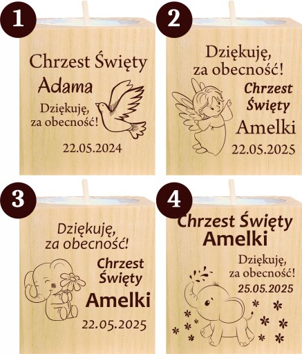 Podziękowanie dla Gości Komunia Chrzest piękny świecznik 1 szt grawer IMIĘ