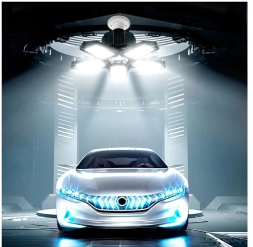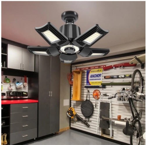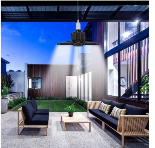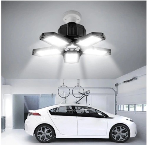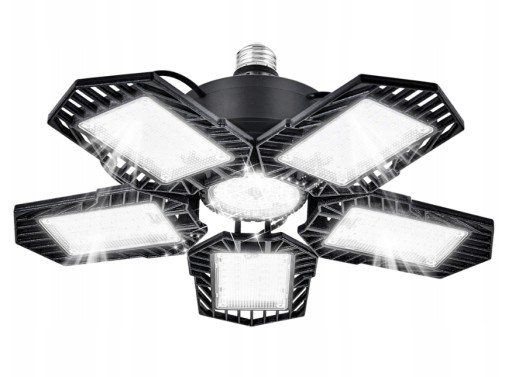 Duża odkształcalna lampa warsztatowa sufitowa, regulowany kąt świecenia, 5 skrzydłowa Mocna 80W