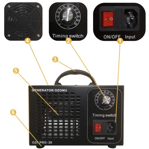 Na obudowie generatora ozonu została umieszczona instrukcja użytkowania ozonatora w języku polskim dzięki czemu nawet pod dłuższej przerwie nie używania ozonatora można sobie szybko i wygodnie przypomnieć zasady używania urządzenia.