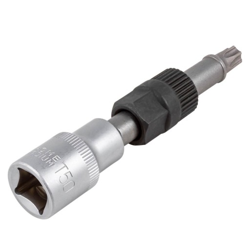 Głowica w kształcie TORX T50 jest idealnie dostosowana do zabezpieczeń sprzęgiełek alternatora, zapewniając pewne i skuteczne chwycenie elementu. To narzędzie szczególnie przydatne przy demontażu sprzęgiełek, które są zabezpieczone specjalnymi śrubami TORX. Dzięki temu kluczowi, użytkownik może łatwo i skutecznie zdjąć sprzęgło sprzęgiełka alternatora bez ryzyka uszkodzeń.