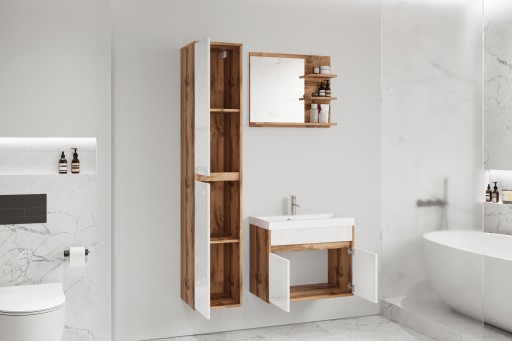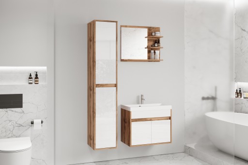 ➡️ Meble łazienkowe w kolorze dąb wotan/ biały połysk