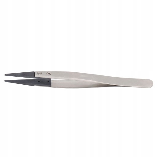 1. GŁÓWKA ANTYSTATYCZNA: Głowica pęsety wykonana jest z tworzywa sztucznego z włókna węglowego, o wysokiej wytrzymałości i dobrych właściwościach antystatycznych, bezpiecznych i trwałych.