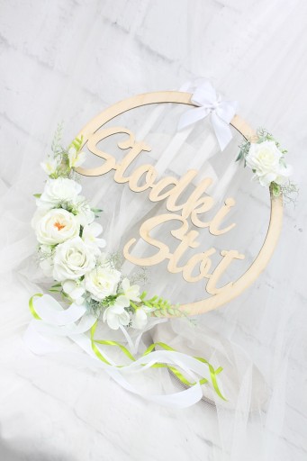 Obręcz kwiatowa o średnicy 40cm z napisem Słodki Stół.